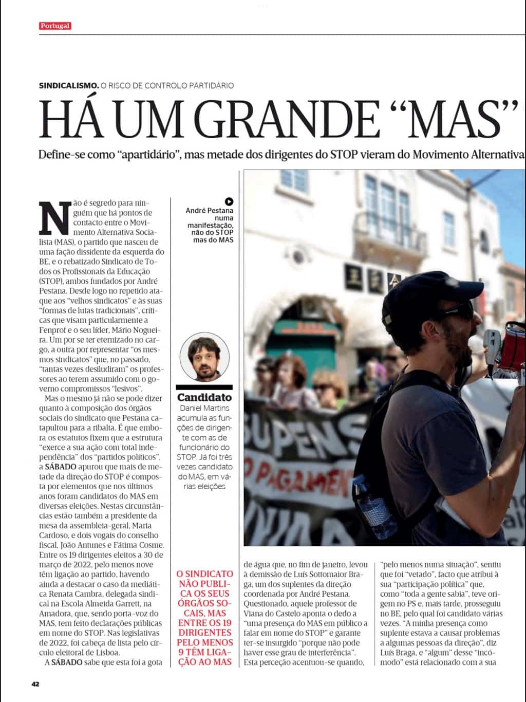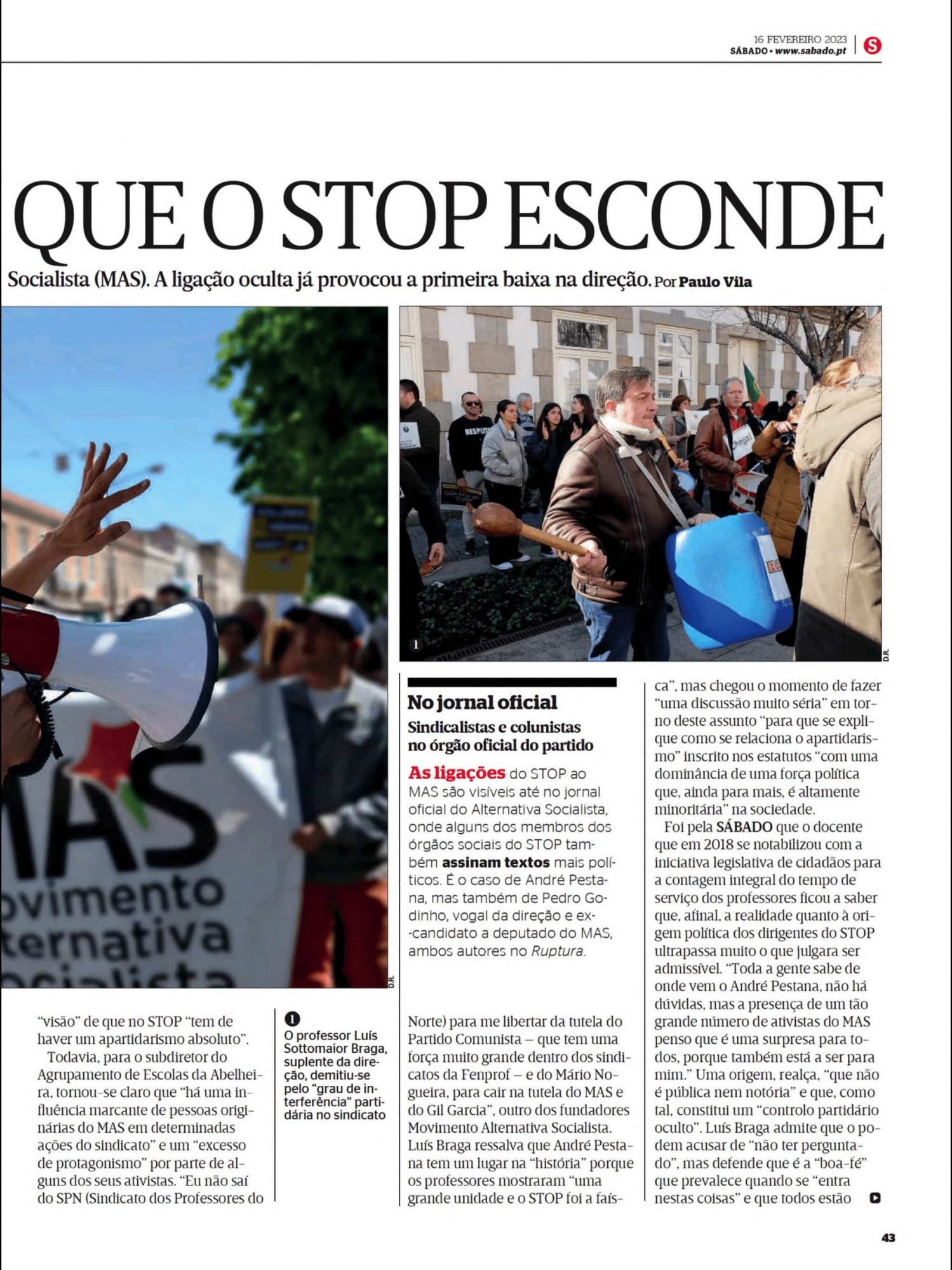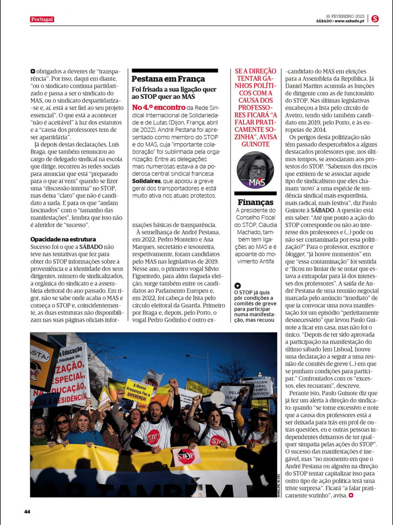 Mas infelizmente PG não serviu a causa dos professores na revista Sábado.
